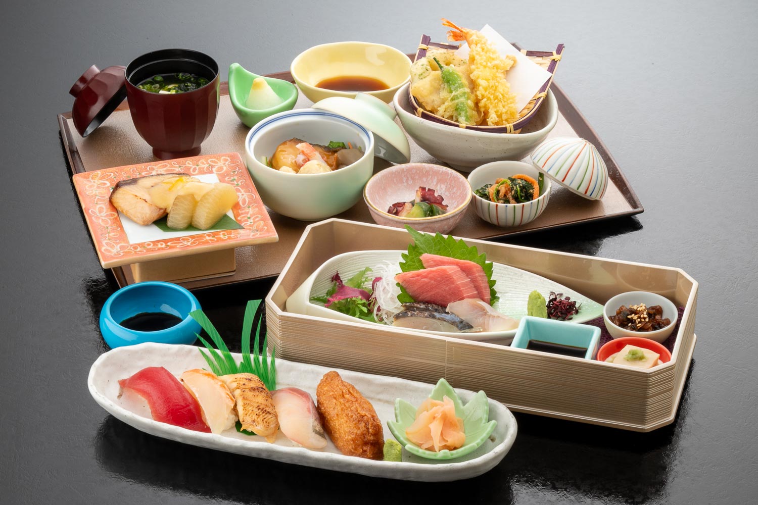 千歳 ちとせ 4,300円(税込) 3,910円(税別) 会席料理をアレンジしたオプション料理を選べる会席御膳 [先付]胡麻豆腐、あさり甘辛煮 [和え物]国産ほうれん草と人参の胡麻和え [お造り]鮪トロ、平目、寒鰆のたたき [酢物]タコブツと胡瓜の酢味噌和え [焼物]寒ブリ柚子焼きと大根の西京味噌田楽 [煮物]銀鱈と湯葉のカニ銀あん掛け [揚物]天ぷら盛り合わせ [飯物]炊き込みご飯 [汁物]浜名湖産生海苔みそ汁 八千代 やちよ 4,300円(税込) 3,910円(税別) 宴を盛り上げるつまみ料理が充実した宴会御膳 [先付]枝豆とカシューナッツのペペロンチーノ [お造り]鰹のたたきと翡翠茄子の土佐酢掛け [焼物]豚カルビのガーリック焼肉鉄板焼き [揚物]銀鱈と豆腐の揚げおろし [冷菜]生ハムポテトサラダと海老マヨ [寿司]季節のお寿司3貫盛り [汁物]稲庭坦々うどん 千歳(お寿司変更) ちとせ(おすしへんこう) 5,000円(税込) 4,546円(税別) 飯物を季節のお寿司に変更 [先付]胡麻豆腐、あさり甘辛煮 [和え物]国産ほうれん草と人参の胡麻和え [お造り]鮪トロ、平目、寒鰆のたたき [酢物]タコブツと胡瓜の酢味噌和え [焼物]寒ブリ柚子焼きと大根の西京味噌田楽 [煮物]銀鱈と湯葉のカニ銀あん掛け [揚物]天ぷら盛り合わせ [飯物]季節のお寿司 [汁物]浜名湖産生海苔みそ汁 千歳(黒毛和牛A5すき焼き付) ちとせ(くろげわぎゅうえーごすきやきつき) 5,200円(税込) 4,728円(税別) 黒毛和牛A5すき焼き鍋付 [先付]胡麻豆腐、あさり甘辛煮 [和え物]国産ほうれん草と人参の胡麻和え [お造り]鮪トロ、平目、寒鰆のたたき [酢物]タコブツと胡瓜の酢味噌和え [焼物]寒ブリ柚子焼きと大根の西京味噌田楽 [煮物]銀鱈と湯葉のカニ銀あん掛け [揚物]天ぷら盛り合わせ [飯物]炊き込みご飯 [汁物]浜名湖産生海苔みそ汁 +黒毛和牛A5すき焼き鍋 千歳(黒毛和牛A5ステーキ付) ちとせ(くろげわぎゅうえーごすてーきつき) 5,400円(税込) 4,910円(税別) 黒毛和牛A5ステーキ付 [先付]胡麻豆腐、あさり甘辛煮 [和え物]国産ほうれん草と人参の胡麻和え [お造り]鮪トロ、平目、寒鰆のたたき [酢物]タコブツと胡瓜の酢味噌和え [焼物]寒ブリ柚子焼きと大根の西京味噌田楽 [煮物]銀鱈と湯葉のカニ銀あん掛け [揚物]天ぷら盛り合わせ [飯物]炊き込みご飯 [汁物]浜名湖産生海苔みそ汁 +黒毛和牛A5ステーキ 千歳(お寿司変更・黒毛和牛A5ステーキ付) ちとせ(おすしへんこう・くろげわぎゅうえーごすてーきつき) 6,100円(税込) 5,546円(税別) 飯物を季節のお寿司に変更、 黒毛和牛A5ステーキ付 [先付]胡麻豆腐、あさり甘辛煮 [和え物]国産ほうれん草と人参の胡麻和え [お造り]鮪トロ、平目、寒鰆のたたき [酢物]タコブツと胡瓜の酢味噌和え [焼物]寒ブリ柚子焼きと大根の西京味噌田楽 [煮物]銀鱈と湯葉のカニ銀あん掛け [揚物]天ぷら盛り合わせ [飯物]季節のお寿司 [汁物]浜名湖産生海苔みそ汁 +黒毛和牛A5ステーキ お子様料理 りんご 1,320円(税込) 1,200円(税別) お料理プレートに乗ったメニュー ハンバーグ・海老フライ・鶏の唐揚げ・フライドポテト・スパゲティー・おにぎり・プリン お子様料理 もも おこさまりょうり もも 2,420円(税込) 2,200円(税別) お刺身がついたちょっとボリュームのあるメニュー ハンバーグ・海老フライ(2本)・鶏の唐揚げ(2ヶ)・フライドポテト・スパゲティー・おにぎり・たこ焼き・お刺身3種・ポテトサラダ・ケーキ