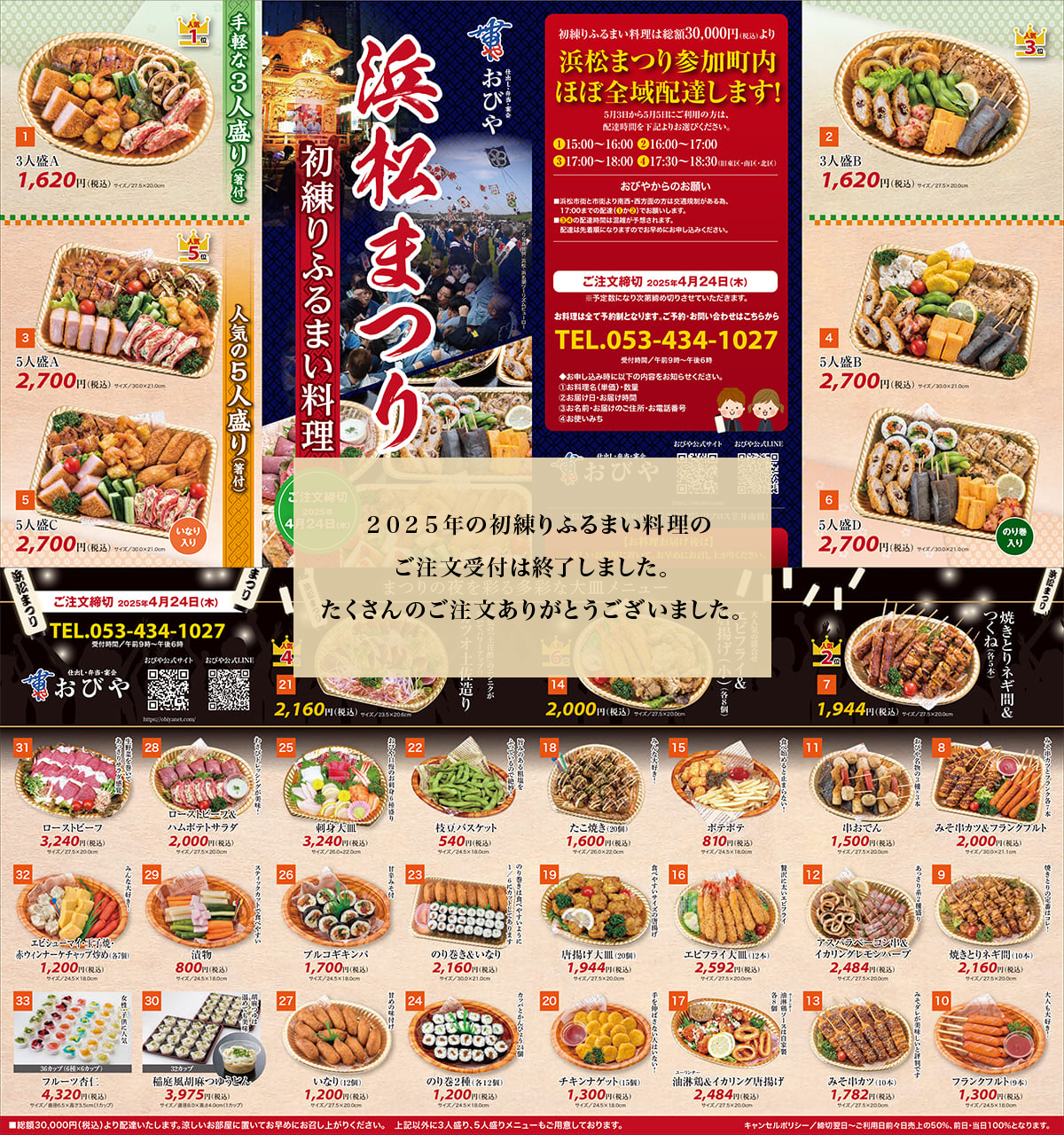 本年も「オードブル」の通常メニューから選んで頂いておりますが、 『凧揚げ会様のつまみ』や『初練りふるまい料理』をご希望の方は、まずはご相談下さい‼ 過去の経験上、いろいろな対応は可能です。 ※担当者が不在の場合もございますので、相談される方はお電話で確認下さい。